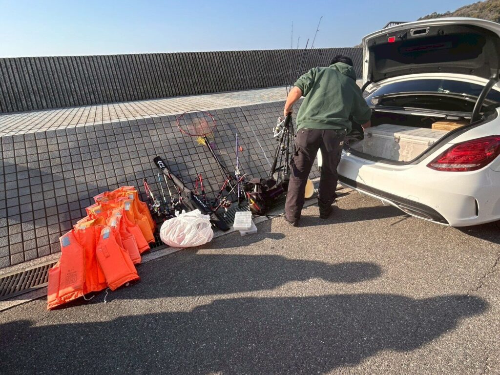 そして大量の釣り竿やらライフジャケットが出てくる私の車ですw。