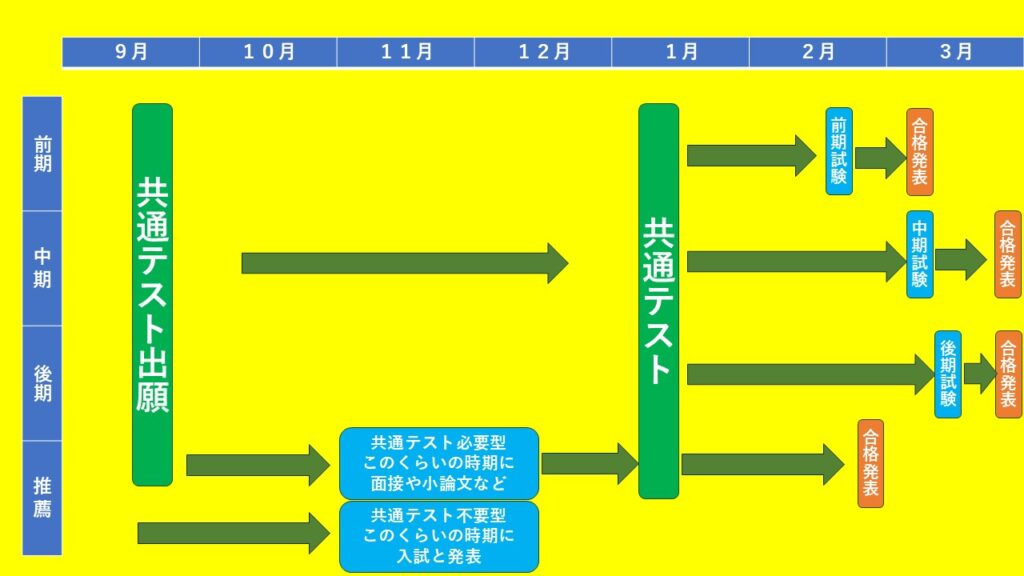 国公立大学は前期日程・中期日程・後期日程の3つに受験日が分かれています。